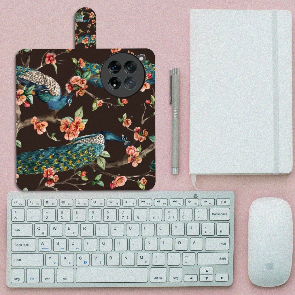 OnePlus 12 Telefoonhoesje sluit met magnetisch lipje Pauw | Bloemen