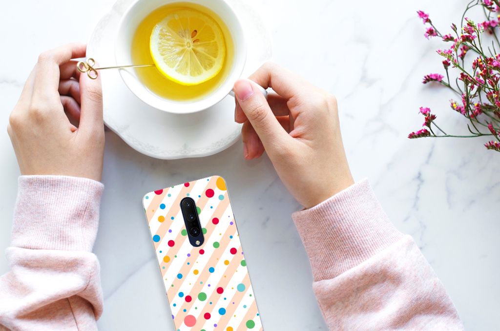 Een OnePlus 7 Pro TPU bumper met verschillende kleuren stippen is een schitterende bescherming van jouw smartphone. De tpu case met het design Dots in alle kleuren van de regenboog komt voor jou als geroepen. Maak je geen gebruik van dit zeer mooie hoesje, dan kan het met jouw smartphone een beetje beroerd aflopen. Deze mooie tpu case met verschillende soorten klompen in verschillende kleuren is zo’n beetje de meest flexibele case die er bestaat. Het hoesje met stippen zorgt voor een goede bescherming van je smartphone, vooral aan de achterzijde en zijkanten. Met een tpu hoesje met stippen in verschillende kleuren blijft jouw gsm volledig in tact. Heb je liever een tpu case met stippen in andere opvallende kleuren? Ontwerp dan zelf een tpu case met je eigen foto’s en teksten! De case wordt aan de achterzijde bedrukt met klompen, de zijkanten blijven doorzichtig.