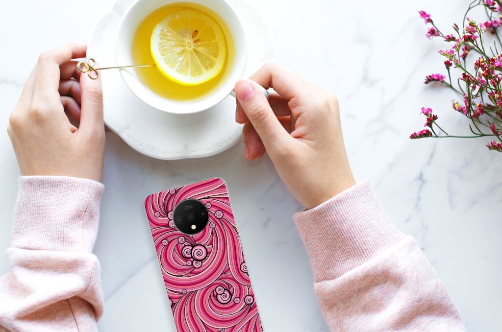 Deze mooie OnePlus 7T Hoesje maken met Swirl Pink is een geweldige en duurzame bescherming voor jouw smartphone. De kleuren zijn zeer subtiel op het hoesje gezet en worden op de bovenkant van de case bedrukt. Dit drukwerk doen we in eigen beheer, zodat het roze en het zwart ook uitstekend tot zijn recht komen op de tpu case. Een tpu hoesje is perfect op maat gemaakt en heeft een mooie uitstraling. Daarnaast is de case zeer flexibel en het materiaal is onbreekbaar. De case heeft opstaande randen ter bescherming van het scherm. De randen van het tpu hoesje worden niet in roze met zwart bedrukt. Nergens tref je een hoesje met deze kleuren aan dat zo goed past bij jouw smartphone.