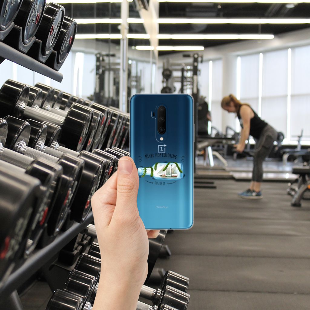 Dit leuke design met een schip in een fles is voor de echte avonturier of reiziger. Dankzij de tekst ‘Never stop exploring: Go for it’ word je altijd herinnerd aan het feit dat het volgende avontuur weer op de loer ligt! Dit design staat op een Telefoonhoesje met Naam voor je OnePlus 7T Pro. TPU is flexibel en heel erg sterk. Zo is je telefoon aan de achterkant en de randen heel goed beschermd. De case is aan de bovenkant bedrukt, de randen blijven transparant. Het TPU-hoesje is perfect te combineren met een screenprotector, zo zijn je telefoon en je beeldscherm altijd goed beschermd.