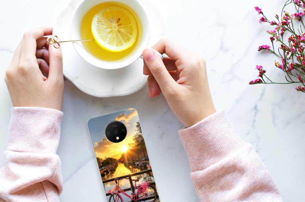 Amsterdam is meer dan ooit een toeristische trekpleister. Een bezoek aan de hoofdstad is niet compleet als je niet aanlegt bij de Amsterdamse Grachten. Ze zijn een symbool van de stad en hebben een enorme culturele en historische waarde. Daarom kunnen ze natuurlijk niet ontbreken in onze collectie design hoesjes. Dit schitterende design hoesje met Amsterdamse grachten tref je enkel en alleen aan bij B2C Telecom. De ondergaande zon en de fleurige en fraaie bloempakketten zorgen voor een prachtig totaalplaatje. Amsterdam is wereldberoemd om haar prachtige grachten uit de zeventiende eeuw. Dit smartphone hoesje is hier een eerbetoon aan. Het design staat op een TPU case. Dit OnePlus 7T Siliconen Back Cover wordt alleen aan de bovenkant bedrukt en is zeer flexibel. De randen van het hoesje blijven transparant.