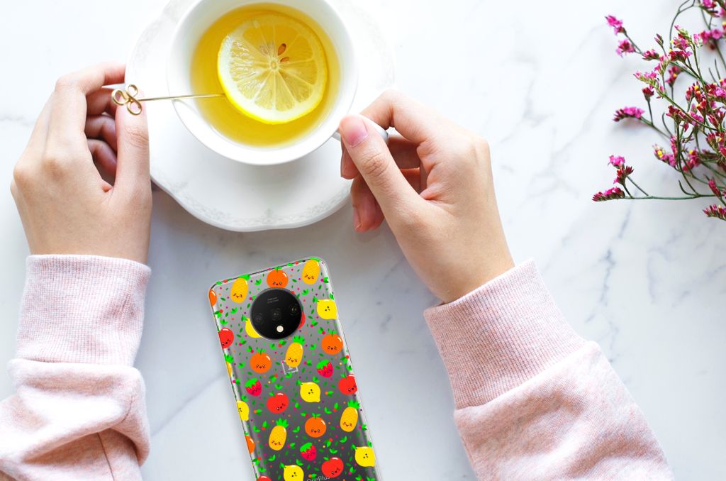 Een fris, fruitig en vrolijk hoesje, deze case met afbeeldingen van aardbeien, ananassen, appels, sinaasappels en citroenen. Minstens twee stuks fruit per dag wordt aanbevolen als dagelijkse hoeveelheid voor de mens. Dit verkleint de kans op allerlei ziekten. Dus met het aantal stukken fruit op de OnePlus 7T Siliconen Case zou je wel een maandje zoet moeten zijn. Met het hoesje zelf kun je je hele leven doen, dit is namelijk niet stuk te krijgen. Dit komt door het sterke en flexibele materiaal waarvan het gemaakt is. De vrolijk stemmende case het desing Fruits maakt jouw telefoon dus zeer duurzaam. Zorg ervoor dat jouw smartphone gezond blijft en kies voor dit hoesje met frivool fruit. Een tpu case met fruit wordt alleen aan de bovenkant bedrukt en is zeer flexibel. De randen van het hoesje blijven transparant en worden niet bedrukt met het fruit.