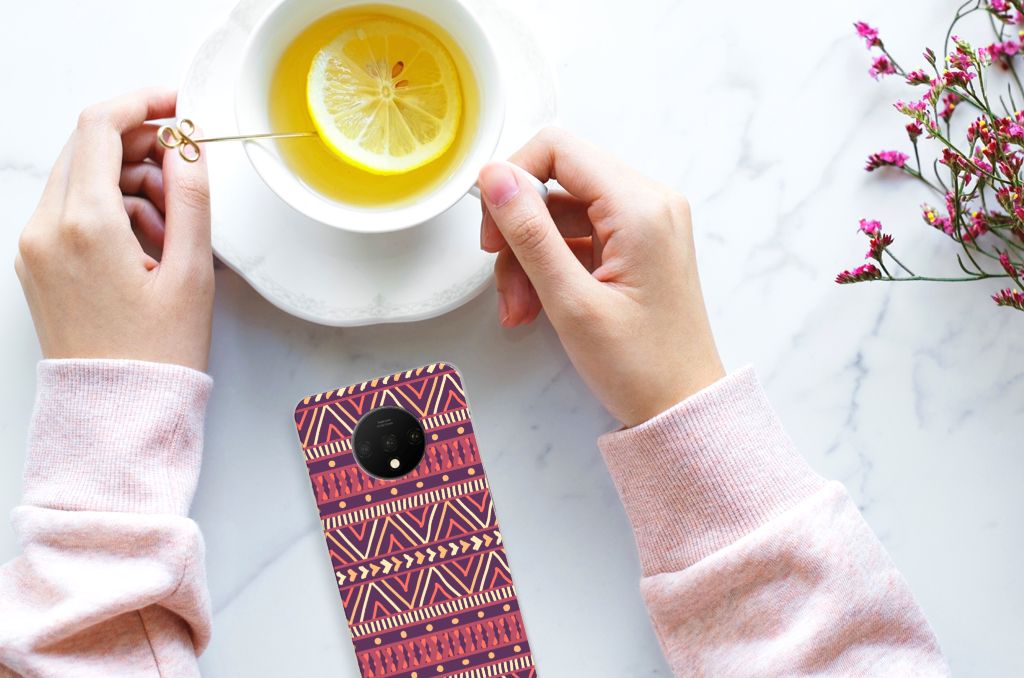 De Azteken leefden tussen 1200 en 1521 in het huidige Mexico. De mooie Aztec-patronen waar zij bekend om stonden, zien we nu nog op kleding, stoffen en tassen. Wie had toen kunnen bedenken dat we diezelfde prints honderden jaren later zelfs op een telefoonhoesje zouden vinden? Dit kleurrijke Aztec Purple-hoesje is perfect voor iedereen die een stukje geschiedenis bij zich wil dragen maar ook gewoon een mooi patroon op zijn hoesje wil. Dit vrolijke, kleurrijke ontwerp staat op een TPU bumper voor de OnePlus 7T. TPU is flexibel en onbreekbaar. Zo is je telefoon aan de achterkant en de randen heel goed beschermd. De case is aan de bovenkant bedrukt, de randen blijven transparant.