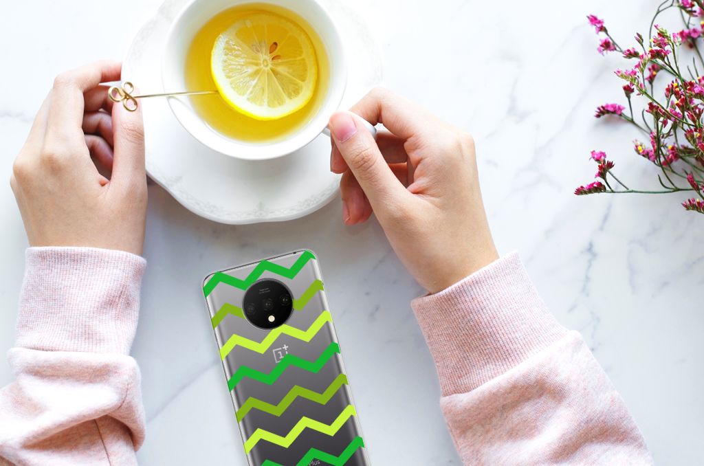 Dit zigzag groene design hoesje is speciaal ontworpen voor jou. We hebben bewust verschillende stijlen groen gebruikt, zodat er voldoende sprake is van variatie. Dit groene hoesje ziet er super strak uit. Dat kan ook niet anders als je weet dat onze designer zijn creativiteit heeft gebruikt. Hij schudt voortdurend nieuwe designs uit zijn mouw en dit zigzag groene hoesje is een van zijn fraaiste creaties. Een heel tof OnePlus 7T TPU bumper, al zeggen we het zelf. Valt dit Zigzag Groen design hoesje goed bij jou? Bestel het dan vandaag nog en je hebt het morgen in huis. Het design staat op een TPU case. Dit hoesje wordt alleen aan de bovenkant bedrukt en is zeer flexibel. De randen van het hoesje blijven transparant en worden niet bedrukt. Met dit hoesje past jouw telefoon altijd in je broekzak.