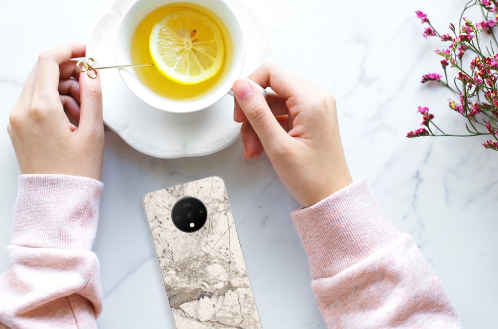 Dit design hoesje met Marmer Beige is voor de artistieke personen onder ons. De Grieken en Romeinen wisten het steen al te waarderen door het als bouw- en bekledingsmateriaal toe te passen. Naast het witte Carrara marmer met haar zacht grijze geaderde belijning zijn de diverse marmersoorten in een ruim kleurenpallet te krijgen. We hebben verschillende kleuren op design hoesjes gezet, zoals in dit geval beige marmer. Dit is een OnePlus 7T TPU Siliconen Hoesje met marmer in beige kleur. Het marmer wordt bedrukt op de voorkant van een tpu case, die beschikt over opstaande randen aan de voorkant en goed combineert met een screenprotector. De rijkheid aan kleuren en varianties in afwerking geeft designers de vrijheid om met marmer hele mooie architectonische projecten te realiseren. Wij hebben onze designer ook veel vrijheid gegeven. Het resultaat zie je terug in deze tpu case met beige marmer, die jouw smartphone goed beschermt. De zijkanten van de case worden niet bedrukt met marmer.