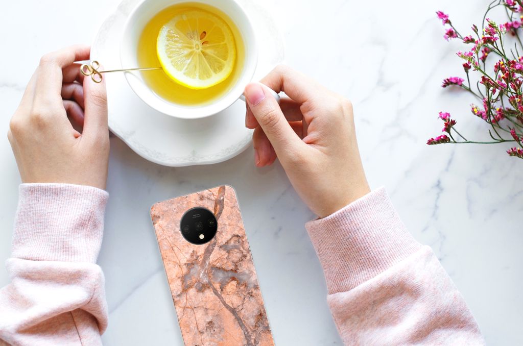 Dit design hoesje met Marmer Oranje is zeer geschikt voor jouw kostbare telefoon. Vanwege zijn prachtige lichtval en vastheid is marmer een zeer gewild bouwmateriaal. Wij kunnen inmiddels concluderen dat dit hoesje met oranje marmer ook zeer gewild is. Beloon jezelf en je telefoon met dit hele mooie OnePlus 7T TPU Siliconen Hoesje. Naast het oranje marmer zijn er de diverse marmersoorten in een ruim kleurenpallet te krijgen. Deze tpu case met marmer in oranje wordt aan de achterzijde bedrukt. De case beschikt over opstaande randen en is gemaakt van onbreekbaar materiaal. De randen van de case in oranje marmer blijven transparant. Wij hebben onze designer veel vrijheid gegeven met het ontwerpen dit mooie hoesje. Het resultaat zie je terug in deze tpu case met oranje marmer, dat een hele goede bescherming is voor jouw smartphone. Des te mooi dat wij voor variatie hebben gekozen door een hoesje met oranje marmer aan de bieden.