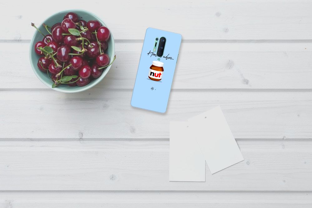 Ben je liefhebber van chocoladepasta, dan is dit het perfecte OnePlus 8 Pro Siliconen Case voor jou. De chocoladepasta is enorm populair, dus is het niet zo heel gek dat je een ‘Nut Home’ tpu case in een blauwe kleur aantreft in ons assortiment design hoesjes met illustraties. Dit tpu hoesje is zeer flexibel en past altijd in je broekzak. Alleen de bovenkant van dit hoesje wordt door ons bedrukt in blauwe kleur met de pasta, op zeer duurzame manier. Mensen die houden van de bekendste pasta van het moment, kiezen voor deze blauwe tpu case. Er staan geen illustraties op de zijkanten van een tpu case. Je kunt ook een eigen tekst toevoegen aan het opvallende design.