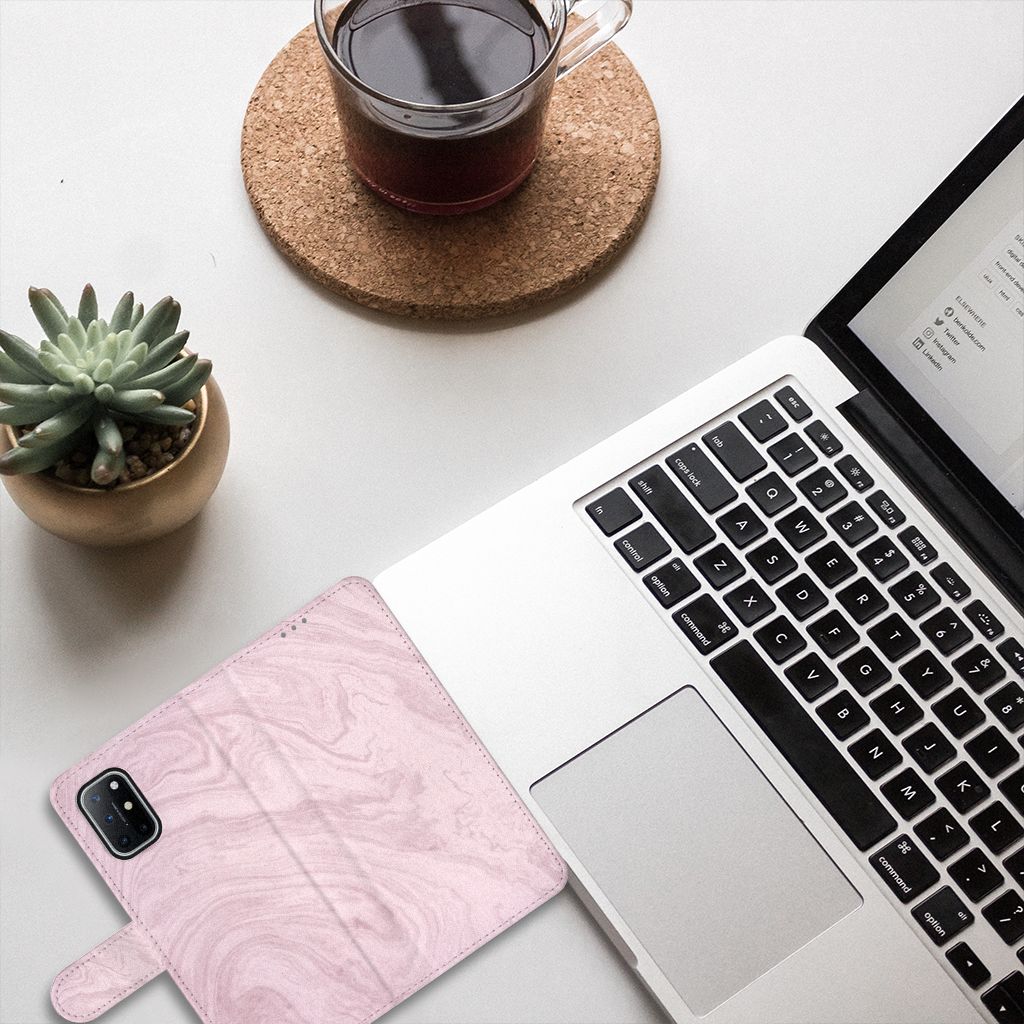OnePlus 8T Bookcase met magnetische sluitclip Marble Pink