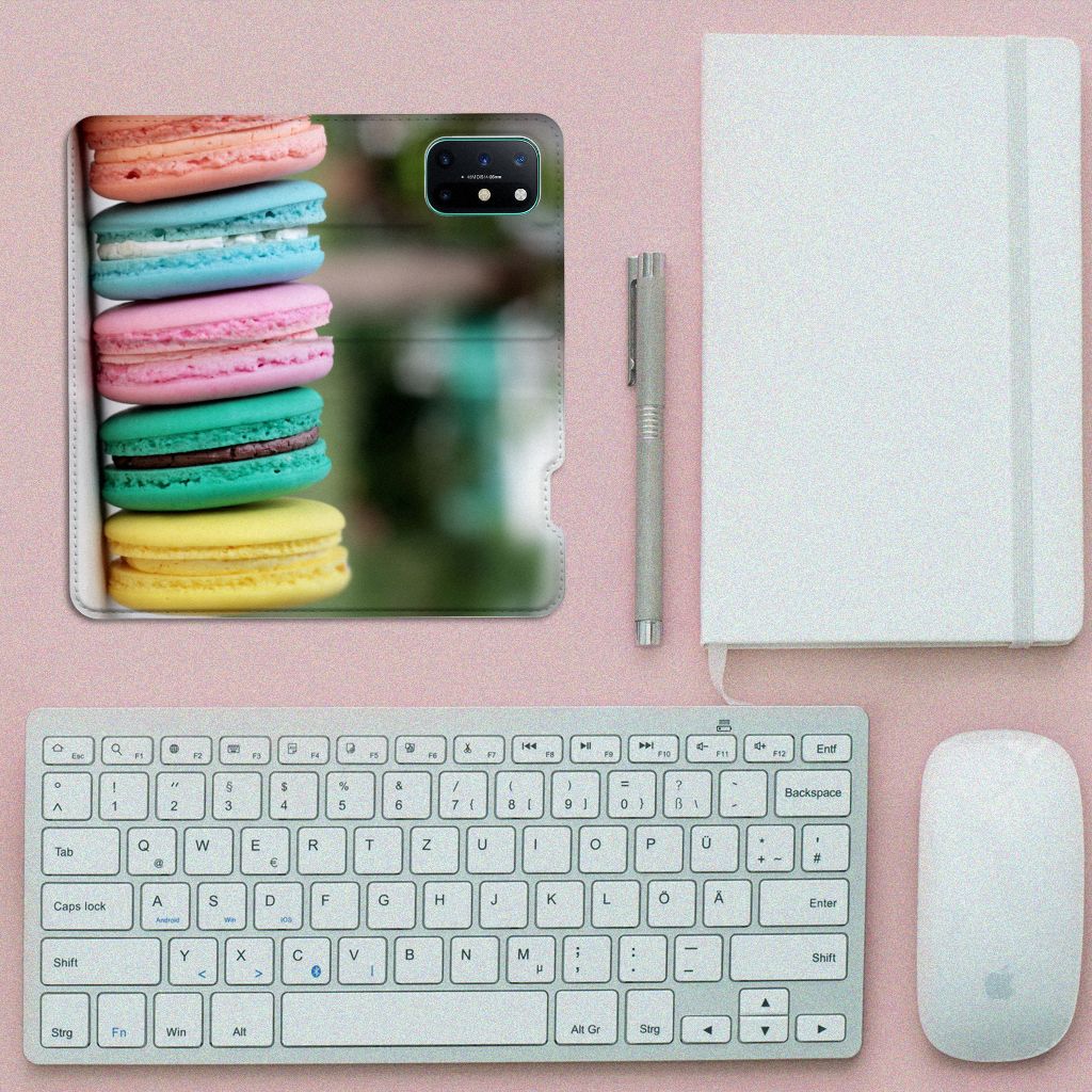 Dit stand hoesje met macarons is een zeer opvallende bescherming voor jouw smartphone. Macarons zijn Franse koekjes: kleine, rond en luchtig. Ze zijn aan elkaar geplakt met een zachte vulling. Ze worden in veel verschillende smaken gemaakt, herkenbaar aan de verschillende kleuren zoals chocolade (donkerbruin), mokka (middenbruin), kersen (rood), pistache (groen), aardbei (roze), framboos (karmijn), citroen (geel) en kokos (roomwit). Deze kleuren kun je natuurlijk ook zien op dit fraaie design hoesje met macarons. Heb je altijd al een OnePlus 8T Flip Style Cover willen hebben met macarons? Grijp dan nu je kans. Deze case heeft zeer veel goede eigenschappen, zoals 1 opbergvakje en een magnetische sluiting aan de binnenkant. Dit design hoesje met macarons wordt aan alle zijden bedrukt. De houder aan de binnenkant van het hoesje is van TPU. De case heeft ook een handige standaard.
