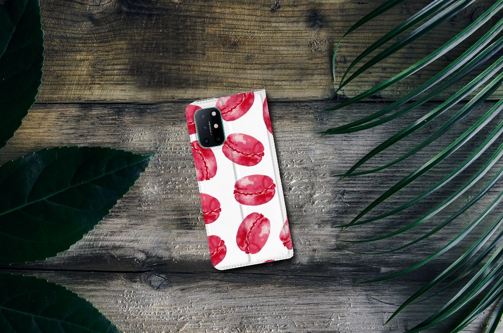Dit stand hoesje met Pink Macarons is een zeer opvallende bescherming voor jouw smartphone. Macarons zijn Franse koekjes: kleine, rond en luchtig. Ze worden in veel verschillende smaken gemaakt, herkenbaar aan de verschillende kleuren zoals chocolade (donkerbruin), mokka (middenbruin), kersen (rood), pistache (groen), aardbei (roze), framboos (karmijn). Deze kleuren kun je net allemaal zien op dit fraaie design hoesje met roze macarons. Heb je altijd al een OnePlus 8T Flip Style Cover willen hebben met roze macarons? Grijp dan nu je kans. Deze case heeft zeer veel goede eigenschappen, zoals 1 opbergvakje en een magnetische sluiting aan de binnenkant. Dit design hoesje met roze macarons wordt aan alle zijden bedrukt. De houder aan de binnenkant van het hoesje is van TPU. De case heeft ook een handige standaard.