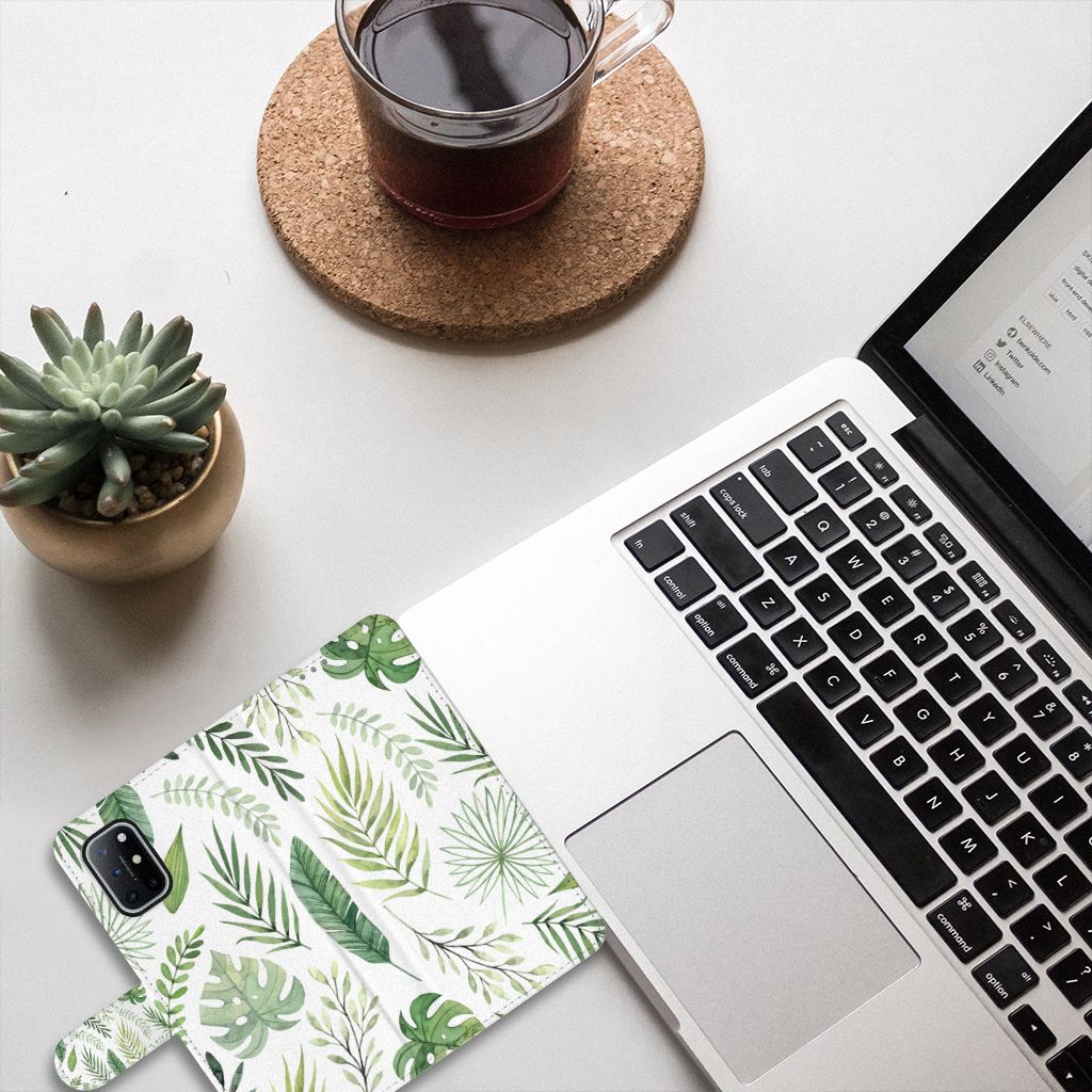 OnePlus 8T Hoesje met ruimte voor pasjes Leaves