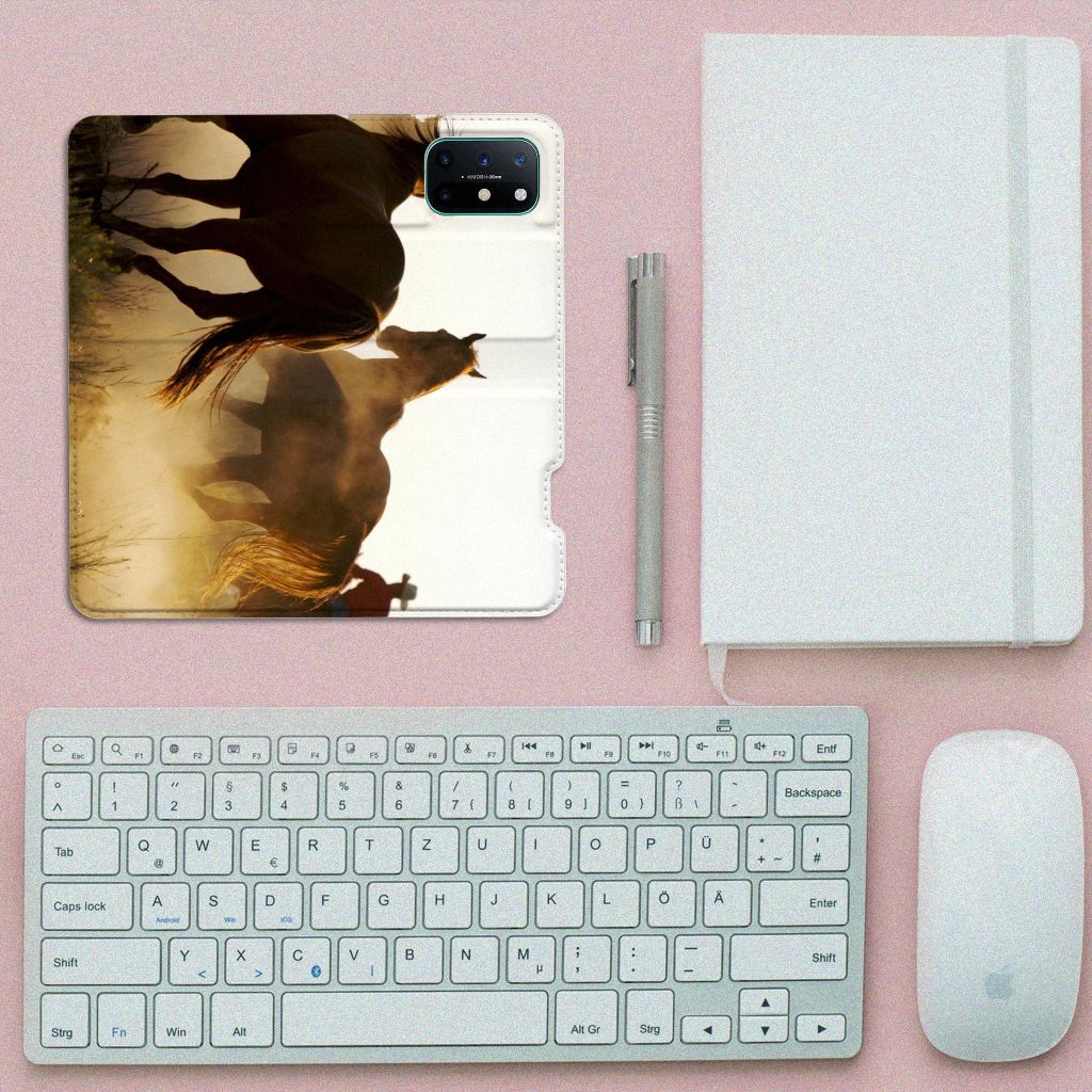 Voor de paardenliefhebbers onder ons hebben we onze collectie uitgebreid met dit design hoesje met print van paarden. Vroeger hield de mens vooral werkpaarden, inmiddels hebben we vriendschap gesloten met het paard. Vandaar dat het ook een favoriet dier is op onze smartphonehoesjes, zoals deze stand cases. Deze OnePlus 8T Hoesje maken met paarden is niet alleen super mooi en chique, het sluit ook nog perfect dankzij de magneet aan de binnenzijde. Verder heeft de case een TPU houder aan de binnenzijde en een houder voor een pasje. Zie je liever je eigen paard terug op een hoesje? Dat kan! Door zelf een uniek hoesje te ontwerpen, met eigen foto’s en teksten. De stand case met paarden wordt aan alle zijden bedrukt.