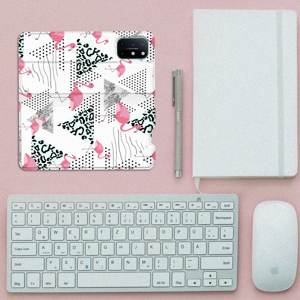 Een OnePlus 8T Hoesje maken met Flamingo Triangle is in vele opzichten bijzonder. De rode flamingo op het hoesje komt oorspronkelijk uit het Caraïbische gebied. Stel dat je in deze regio vakantie viert, dan val je zonder meer op met dit hoesje met flamingo’s en driehoeken. Deze stand case biedt bescherming voor alle zijden van je telefoon. Jouw smartphone ligt goed opgeborgen in de TPU houder aan de binnenzijde en in dit gedeelte van het hoesje met flamingo’s en driehoeken zit de magnetische sluiting. Ook de palmbomen op deze stand case bieden het ultieme vakantiegevoel. De stand case met flamingo’s en driehoeken heeft vakjes voor pasjes en is op maat gemaakt.
