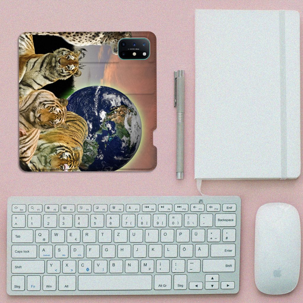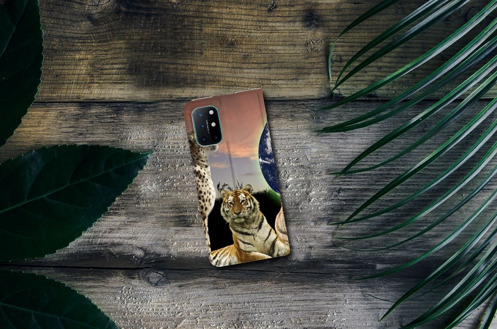 Deze standcase met roofdieren kan exclusief in het bezit van jou komen. Bovendien kun je hier zelf nog unieke teksten en/of beelden aan toevoegen. Je Hoesje maken krijgt dan een unieke identiteit. Roofdieren zoals tijgers op dit hoesje zijn voortdurend op zoek naar een geschikte prooi. De tijgers met aardbol op de achtergrond op deze stand case geven jouw OnePlus 8T een hele stoere uitstraling. Deze bijzondere case is van PU-leer (buitenzijde) en TPU (binnenzijde) en beschikt over een houder en een speciale standaard. Verder is deze stand case met roofdieren voorzien van een magnetische sluiting aan de binnenzijde. Je zorgt voor de perfecte bescherming van je smartphone met dit design hoesje met roofdieren met aardbol op de achtergrond.