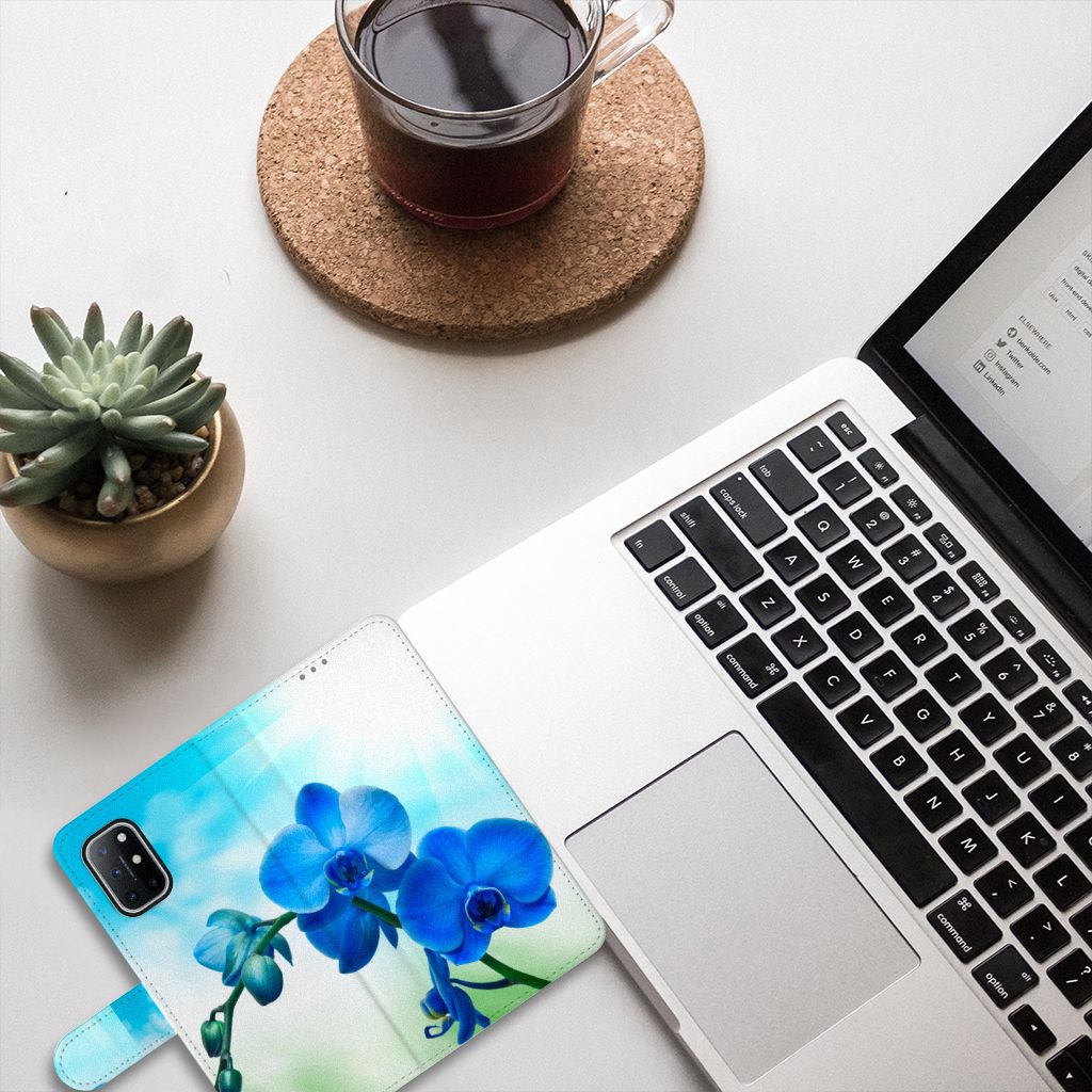OnePlus 8T Hoesje met magnetische sluitclip Orchidee Blauw