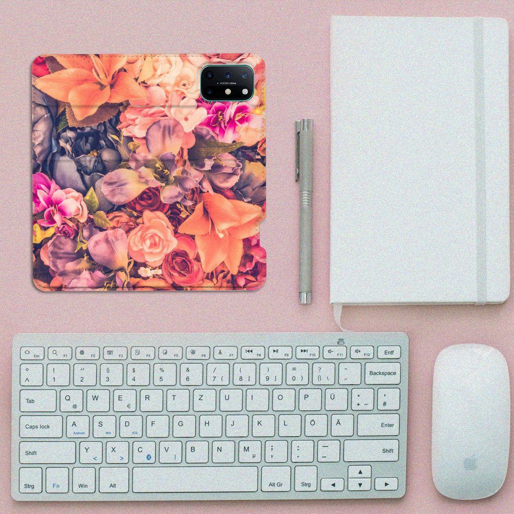 Dit Bosje Bloemen doet een mens en zijn smartphone goed. De oranje, paarse en roze bloemen op deze OnePlus 8T Smart Cover geven jouw smartphone een zeer sierlijke uitstraling. Je wordt er ook meteen vrolijker van als je aan het appen, mailen of aan het bellen bent. Valt dan je telefoon op de grond, dan zal er dankzij de stand case met oranje, paarse en roze bloemen geen schade ontstaan. Onze stand cases met oranje, paarse en roze bloemen bieden de allerbeste bescherming en zijn heel praktisch, wat blijkt uit onder meer het vakje aan de binnenkant en de handige standaard waarmee je de smartphone rechtop op tafel neer kunt zetten. De oranje, paarse en roze bloemen passen goed op alle zijden van de case. Op deze stand case van leer en TPU (houder aan de binnenkant) is het ook mogelijk je eigen ontwerp te zetten. In no time maak je zelf een stand case met daarop foto’s van jouw favoriete bloemen.