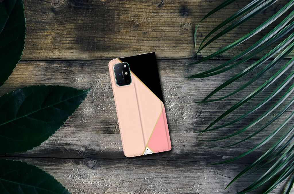 OnePlus 8T Print Stand Case Zwart Roze Vormen