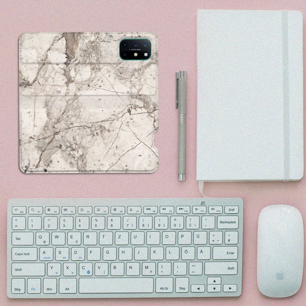 Dit design hoesje met Marmer Beige is voor de artistieke personen onder ons. De Grieken en Romeinen wisten het steen al te waarderen door het als bouw- en bekledingsmateriaal toe te passen. Naast het witte Carrara marmer met haar zacht grijze geaderde belijning zijn de diverse marmersoorten in een ruim kleurenpallet te krijgen. We hebben verschillende kleuren op design hoesjes gezet, zoals in dit geval beige marmer. Dit is een OnePlus 8T Standcase met marmer in beige kleur. Het marmer wordt bedrukt op alle zijden van een stand case, die beschikt over 1 vakje voor een pasje en toebehoren en een magnetische sluiting aan de binnenkant. Verder heeft de case een houder van TPU. De rijkheid aan kleuren en varianties in afwerking geeft designers de vrijheid om met marmer hele mooie architectonische projecten te realiseren. Wij hebben onze designer ook veel vrijheid gegeven. Het resultaat zie je terug in deze stand case met beige marmer, dat de ideale bescherming voor jouw smartphone biedt.