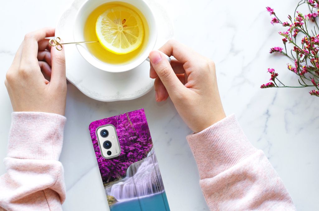 Van een waterval kun je een heel rustig gevoel krijgen, zeker als die op een OnePlus 9 Book Cover staat dat jouw smartphone perfect beschermt tegen allerlei vormen van schade zoals krassen, barsten en scheuren. In de buurt van een waterval ben je tijdens warme zomerdagen niet alleen verzekerd van aangename verkoeling, het is ook een bijzonder rustgevende ervaring. Uit onderzoek blijkt zelfs dat watervallen een helend effect hebben op allerlei aandoeningen. Extra bijzonderheid aan de stand case vormen de paarse bossen op de achtergrond. Dit smartphonehoesje beschermt jouw telefoon aan alle zijden en beschikt over een opbergvakje voor pasjes en briefgeld. De case sluit perfect af dankzij de magneten van binnen. De houder aan de binnenzijde is van TPU. Alle zijden van het hoesje worden bedrukt. Een mooiere waterval met paarse achtergrond kom je op geen enkel ander hoesje tegen.