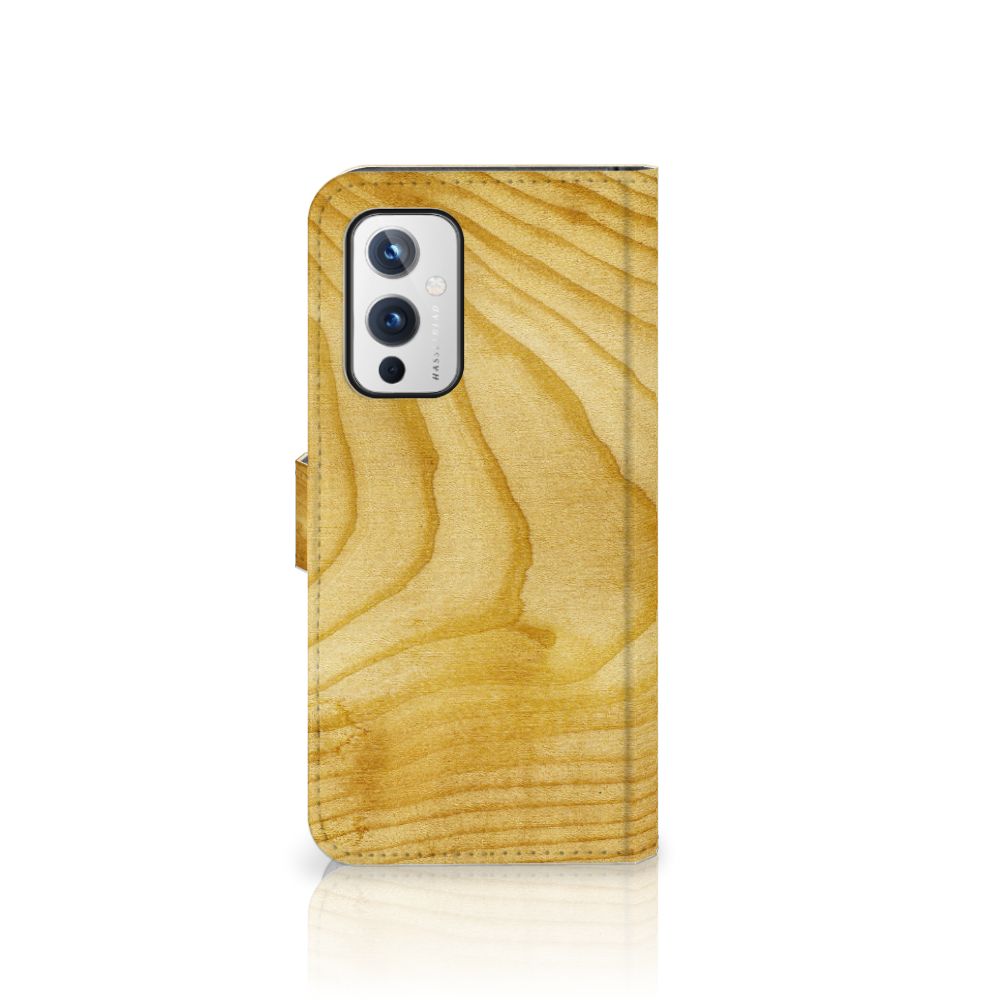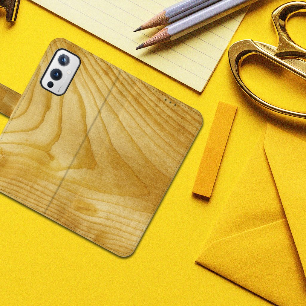 OnePlus 9 Bookstyle Case met pasjes en magnetisch lipje Licht Hout