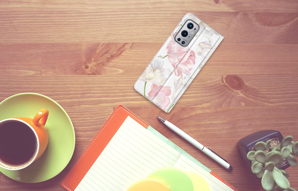 Een bosje bloemen doet een mens (en zijn smartphone) goed. De witte en roze bloemen op dit OnePlus 9 Pro Smart Cover geven jouw smartphone een zeer mooie uitstraling. Je wordt er ook meteen een stuk rustiger van als je aan het appen of aan het bellen bent. Valt dan je telefoon op de grond, dan zal er dankzij de stand case met het design Lovely Flowers ontstaan. Onze stand cases met roze en witte bloemen zien er zeer prettig uit en zijn heel praktisch, wat blijkt uit onder meer het vakje aan de binnenkant en de handige standaard waarmee je de smartphone rechtop op tafel neer kunt zetten. De roze en witte bloemen passen goed op alle zijden van de case. Op deze stand case van leer en TPU (houder aan de binnenkant) kun je trouwens ook je eigen bloemige ontwerp zetten. In een paar simpele stappen maak je zelf een stand hoesje met daarop jouw mooiste bloemen.