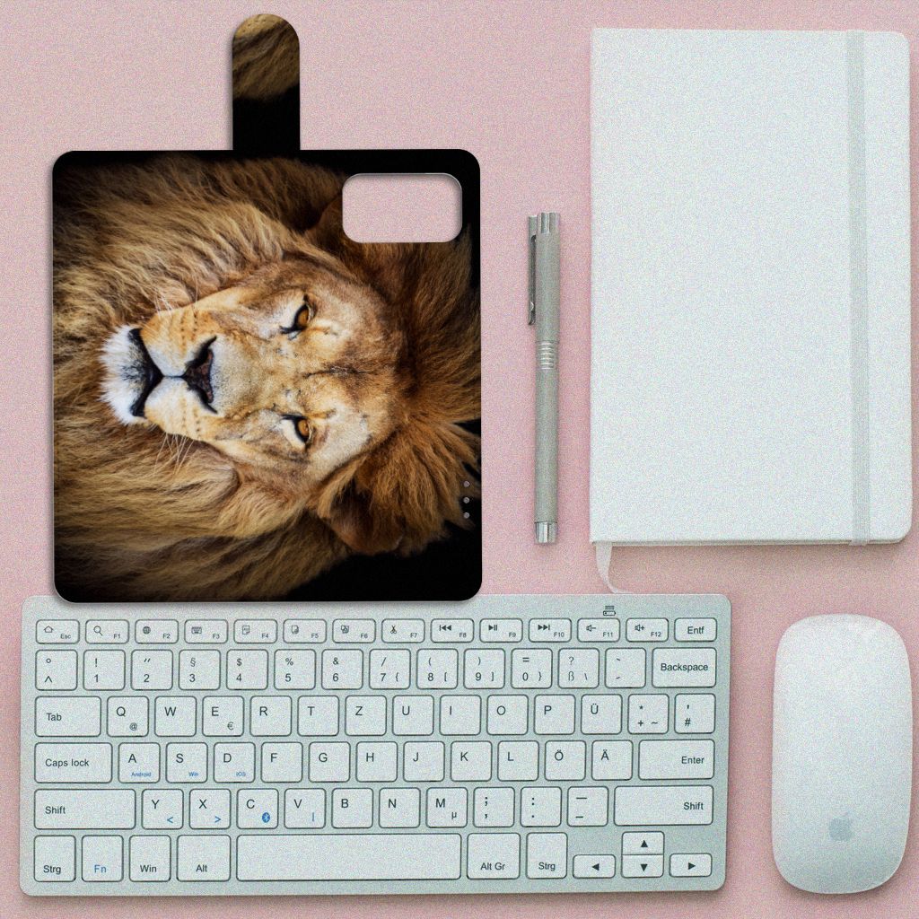 OnePlus 9 Pro Telefoonhoesje met Pasjes en met magnetische sluitclip Leeuw