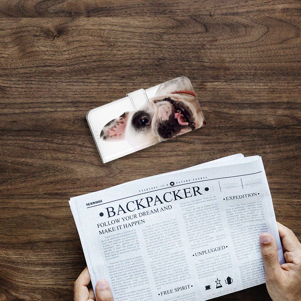 Honden zijn het favoriete dier van de mens, het is daarom alleen maar logisch om die op een telefoonhoesje te plaatsen. En op dit design hoesje staat deze schattige Franse Buldog. Maar misschien heb jij zelf wel een hond en wil je die liever op het hoesje terugzien? Met onze telefoonhoesjes ontwerper is dat geen enkel probleem. Voor dezelfde prijs kun je elke foto die je wilt op het boekhoesje laten zetten. Je kunt hierbij zelfs de naam van jouw hond of een ander stukje tekst laten drukken. Zo eindig je met een Telefoonhoesje met Pasjes wat volledig uniek en naar jouw smaak is.