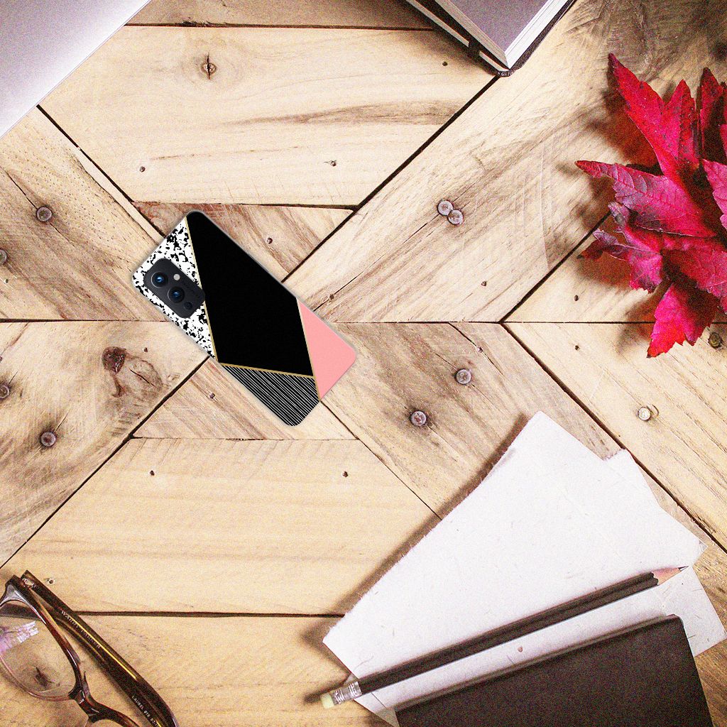 TPU Hoesje OnePlus 9 Zwart Roze Vormen Design