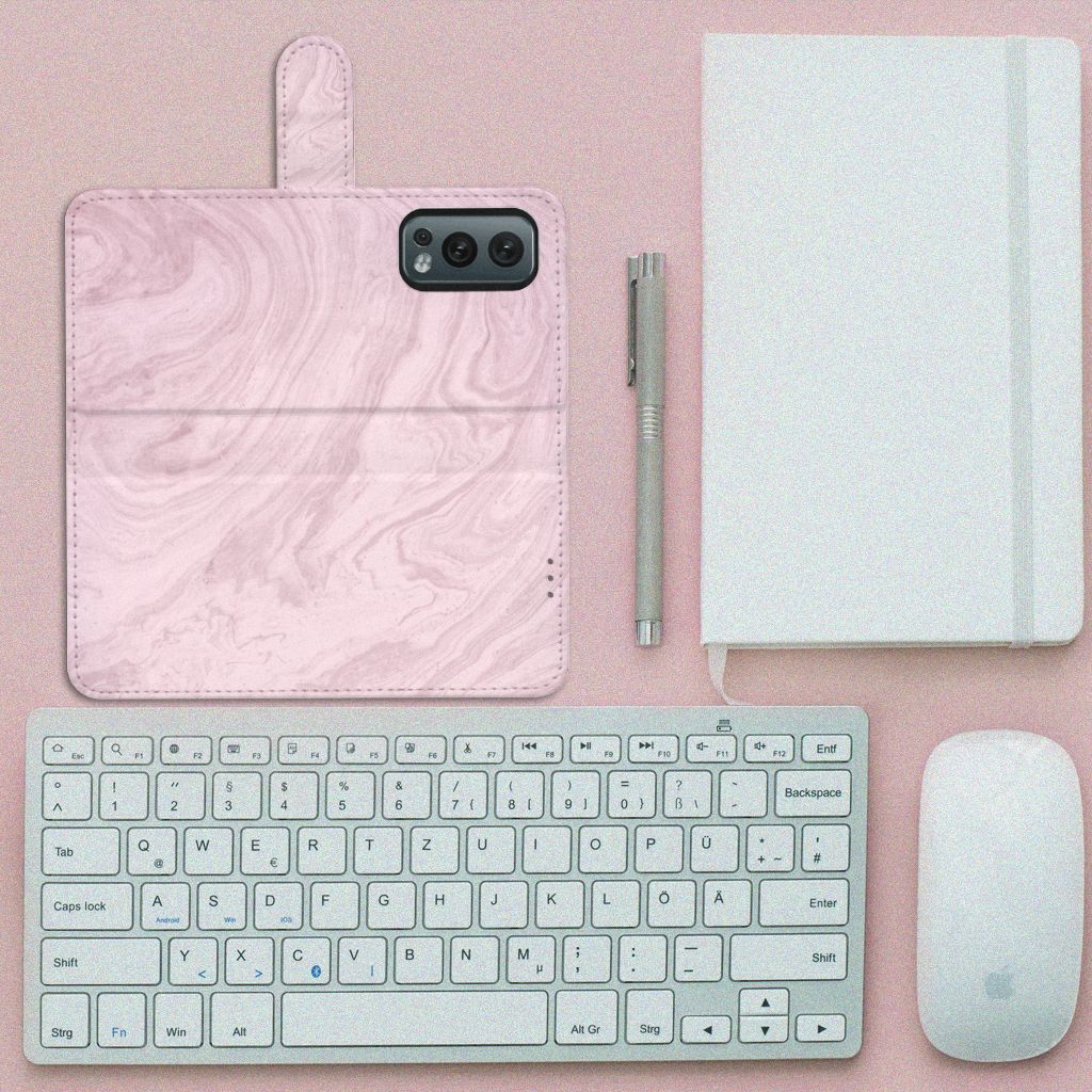 OnePlus Nord 2 5G Bookcase met magnetische sluitclip Marble Pink