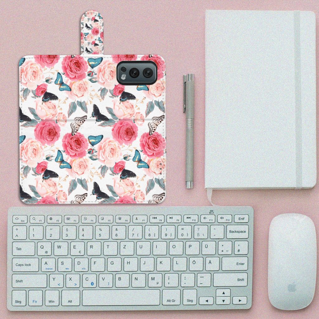 OnePlus Nord 2 5G Hoesje gemaakt van TPU en kunstleer Butterfly Roses