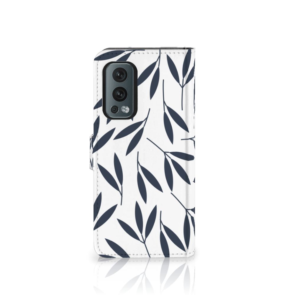 OnePlus Nord 2 5G Hoesje met magnetische lipje als sluiting Leaves Blue