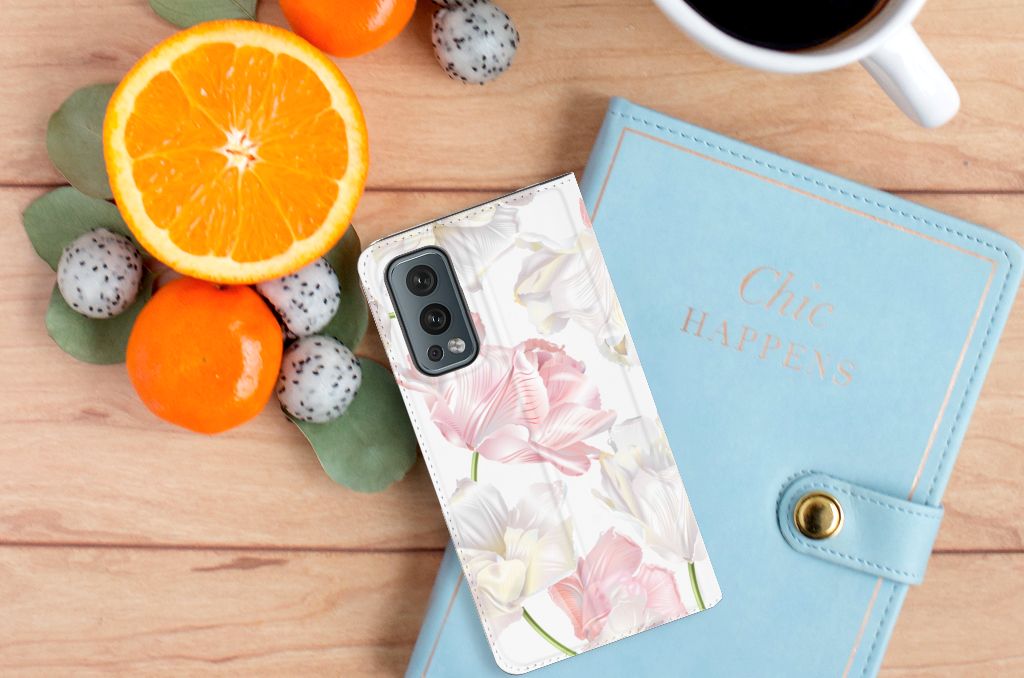 Een bosje bloemen doet een mens (en zijn smartphone) goed. De witte en roze bloemen op dit OnePlus Nord 2 5G Smart Cover geven jouw smartphone een zeer mooie uitstraling. Je wordt er ook meteen een stuk rustiger van als je aan het appen of aan het bellen bent. Valt dan je telefoon op de grond, dan zal er dankzij de stand case met het design Lovely Flowers ontstaan. Onze stand cases met roze en witte bloemen zien er zeer prettig uit en zijn heel praktisch, wat blijkt uit onder meer het vakje aan de binnenkant en de handige standaard waarmee je de smartphone rechtop op tafel neer kunt zetten. De roze en witte bloemen passen goed op alle zijden van de case. Op deze stand case van leer en TPU (houder aan de binnenkant) kun je trouwens ook je eigen bloemige ontwerp zetten. In een paar simpele stappen maak je zelf een stand hoesje met daarop jouw mooiste bloemen.