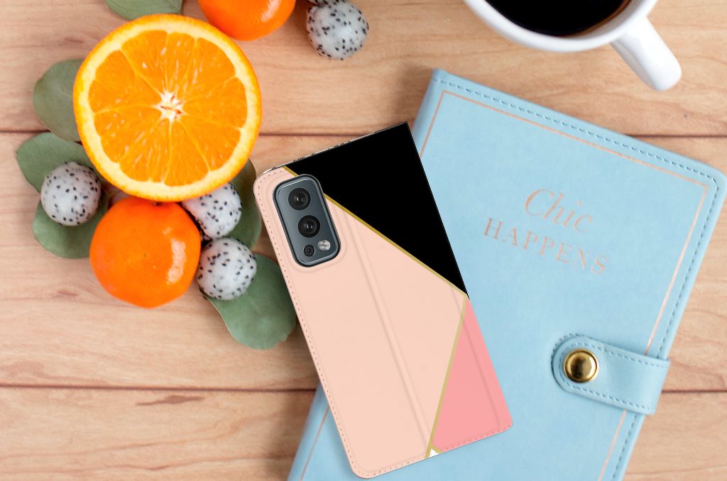 OnePlus Nord 2 5G Print Stand Case Zwart Roze Vormen