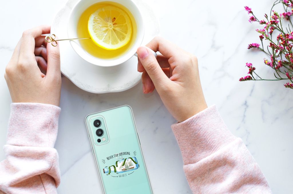 Dit leuke design met een schip in een fles is voor de echte avonturier of reiziger. Dankzij de tekst ‘Never stop exploring: Go for it’ word je altijd herinnerd aan het feit dat het volgende avontuur weer op de loer ligt! Dit design staat op een Telefoonhoesje met Naam voor je OnePlus Nord 2 5G. TPU is flexibel en heel erg sterk. Zo is je telefoon aan de achterkant en de randen heel goed beschermd. De case is aan de bovenkant bedrukt, de randen blijven transparant. Het TPU-hoesje is perfect te combineren met een screenprotector, zo zijn je telefoon en je beeldscherm altijd goed beschermd.