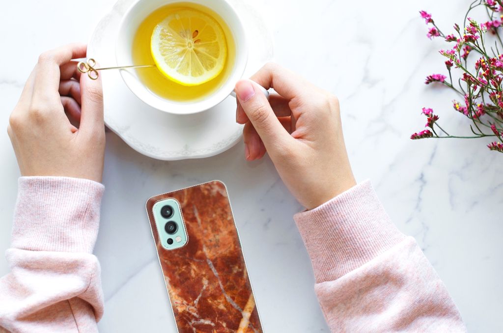 Dit design hoesje met Marmer Bruin is voor de artistieke personen onder ons. De Grieken en Romeinen wisten het al te waarderen door het als bouw- en bekledingsmateriaal toe te passen. Naast het witte Carrara marmer met haar zacht grijze geaderde belijning zijn de diverse soorten in een ruim kleurenpallet te krijgen. We hebben verschillende kleuren op design hoesjes gezet, zoals in dit geval bruin marmer. Dit is een OnePlus Nord 2 5G TPU Siliconen Hoesje met marmer in bruine kleur. Het marmer wordt bedrukt op de voorkant van een tpu case, die beschikt over opstaande randen aan de voorkant en heel goed combineert met een screenprotector. De rijkheid aan kleuren en varianties in afwerking geeft ontwerpers de vrijheid om met marmer hele mooie architectonische projecten te realiseren. Wij hebben onze designer ook veel vrijheid gegeven. Het resultaat zie je terug in deze tpu case met bruin marmer, die jouw smartphone goed beschermt. De zijkanten van de case worden niet bedrukt met marmer.