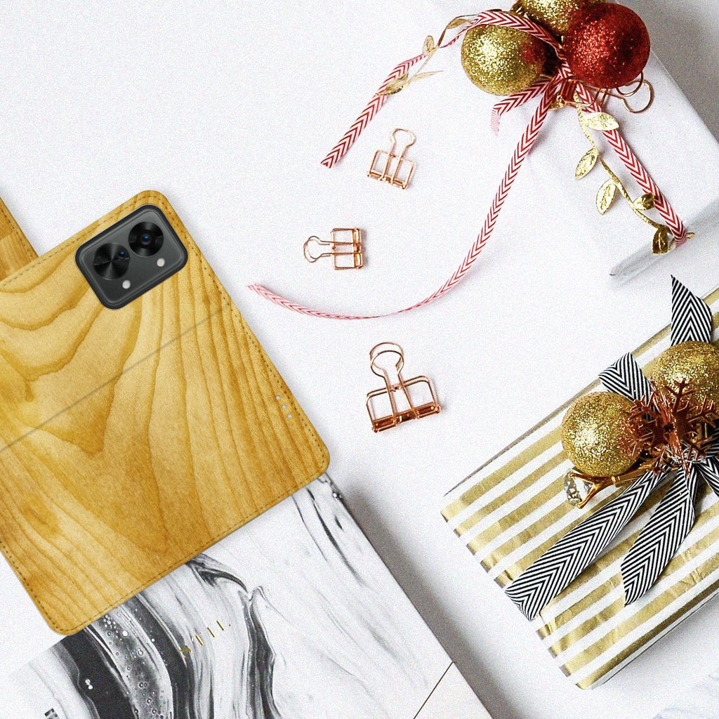 OnePlus Nord 2T Bookstyle Case met pasjes en magnetisch lipje Licht Hout