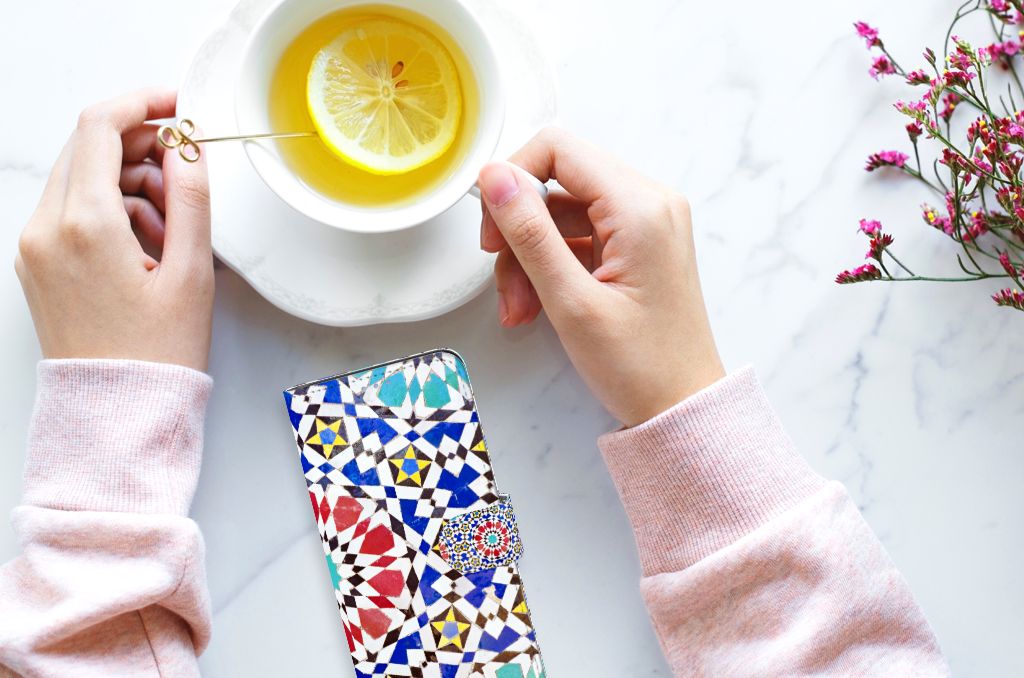 Aan design hoesjes met kunstvormen geen gebrek in onze uitgebreide collectie. Wat dacht je van dit design hoesje met Mozaïek . Dit is een kunstvorm waarbij een grote afbeelding wordt gemaakt uit een groot aantal kleine gekleurde steentjes (tesserae), die in een vloer of wand worden gemetseld. Deze gekleurde steentjes zie je terug op dit boekhoesje met design van mozaïek. Een boekhoesje is zo’n beetje de veiligste case die er bestaat. Een OnePlus Nord 2T Bookcase met print zorgt voor een volledige bescherming van je smartphone en wordt aan alle zijden bedrukt met mozaïek. Een deel van de foto’s staat ook op het lipje aan de buitenzijde. Verder is de houder aan de binnenzijde van TPU. De Grieken en Romeinen beheersten de kunst al. Op diverse plaatsen in Europa zijn mozaïeken teruggevonden die tot op de dag van vandaag goed bewaard zijn gebleven. Met een hoesje met mozaïek blijft jouw telefoon in tact. Je pasjes en briefgeld kun je in de vakjes aan de binnenzijde stoppen