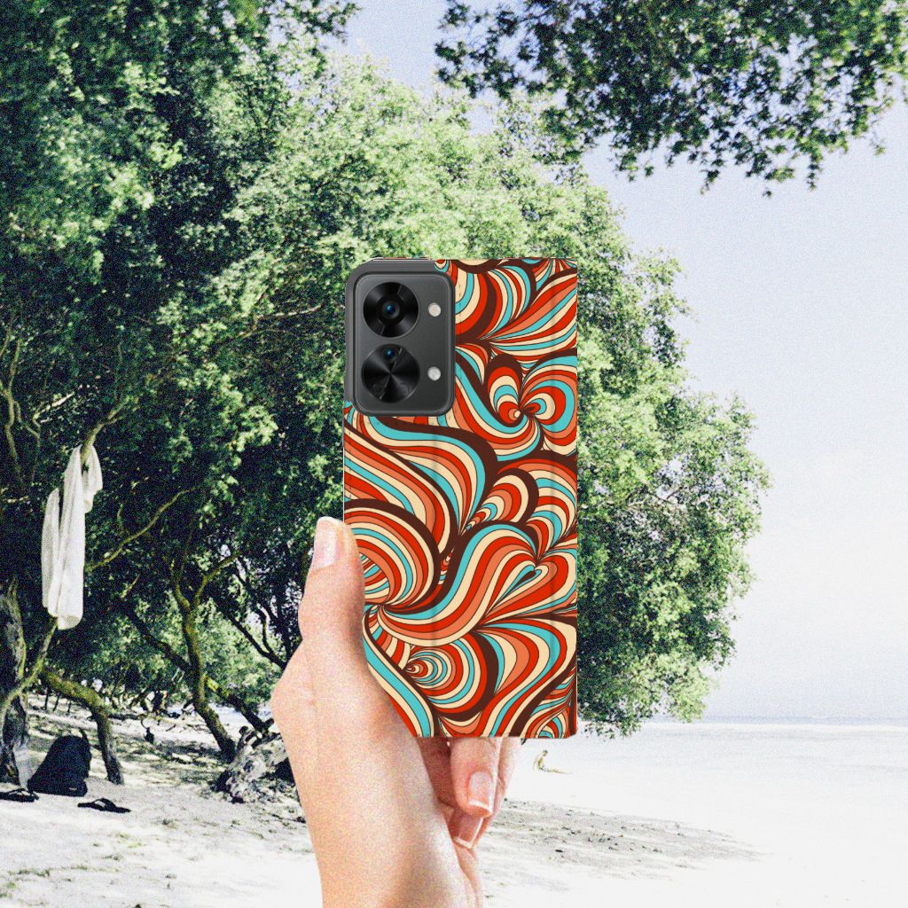 Voor de mensen die een beetje artistiek zijn, is er deze OnePlus Nord 2T Bookcase met kleuren in een soort van retro stijl. Je gaat een beetje terug in de tijd met deze stand case in allerlei felle kleuren en vreemde vormen. De opdruk op dit design hoesje is zeer duurzaam en gaat net zo lang mee als de case zelf. De Retro print wordt in ons eigen magazijn op het hoesje gezet, met speciale uv-inkt. De stand case heeft voldoende uitsparingen dus je hoeft de telefoon nooit uit dit retro design hoesje te halen. Deze case beschermt jouw telefoon aan alle kanten en beschikt over 1 opbergvakje en een speciale standaard. Het hoesje wordt afgesloten met een magneet aan de binnenzijde. De houder aan de binnenzijde van de retro hoes is van TPU.