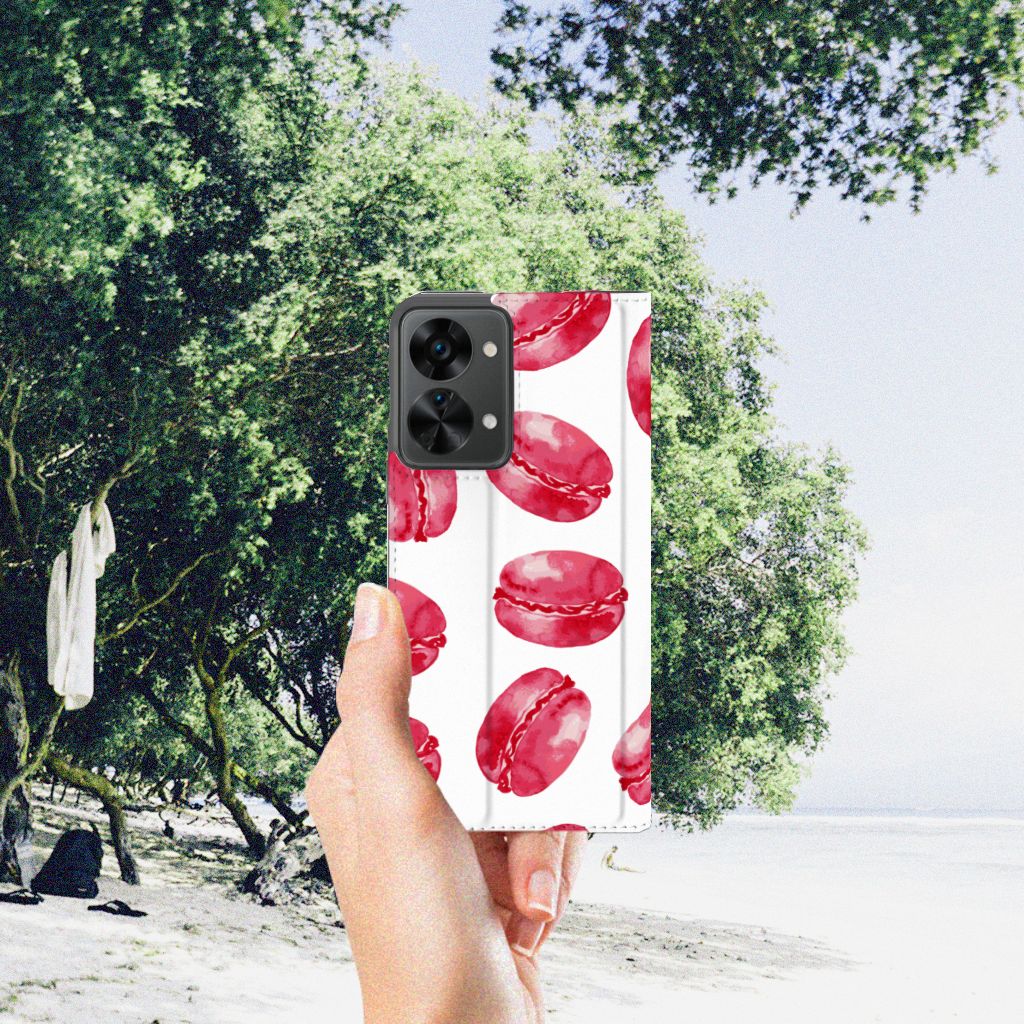 Dit stand hoesje met Pink Macarons is een zeer opvallende bescherming voor jouw smartphone. Macarons zijn Franse koekjes: kleine, rond en luchtig. Ze worden in veel verschillende smaken gemaakt, herkenbaar aan de verschillende kleuren zoals chocolade (donkerbruin), mokka (middenbruin), kersen (rood), pistache (groen), aardbei (roze), framboos (karmijn). Deze kleuren kun je net allemaal zien op dit fraaie design hoesje met roze macarons. Heb je altijd al een OnePlus Nord 2T Flip Style Cover willen hebben met roze macarons? Grijp dan nu je kans. Deze case heeft zeer veel goede eigenschappen, zoals 1 opbergvakje en een magnetische sluiting aan de binnenkant. Dit design hoesje met roze macarons wordt aan alle zijden bedrukt. De houder aan de binnenkant van het hoesje is van TPU. De case heeft ook een handige standaard.