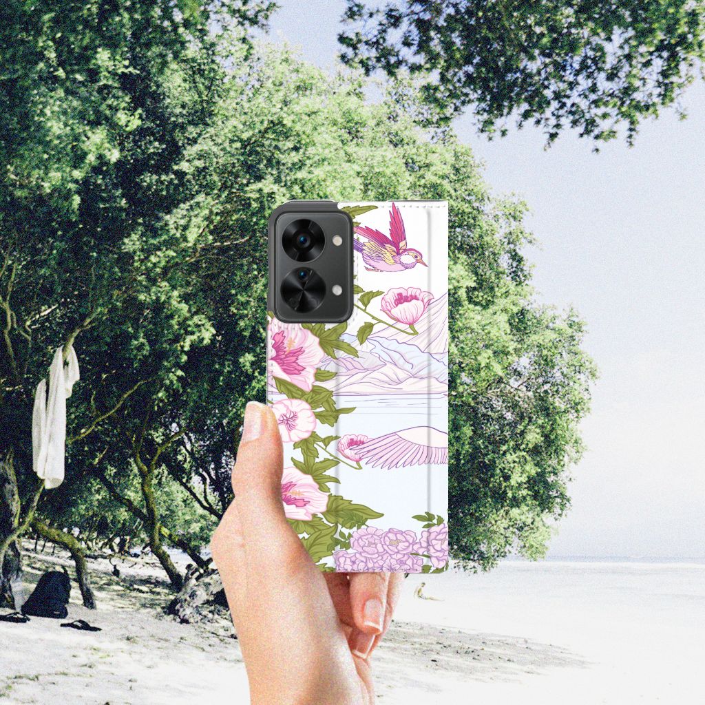Met deze kleurrijke OnePlus Nord 2T Hoesje maken met verschillende paarse vogels blijft jouw toestel in nieuwstaat. De paarse vogels maken het stand hoesje zeer bijzonder. Het hoesje met design Bird Standing in roze en paarse kleuren is een zeer opvallende bescherming voor je telefoon. Het kleurrijke stand hoesje met opvallende vogels beschermt jouw telefoon aan alle zijden en beschikt over een opbergvakje voor een pasje of briefgeld. De roze met paarse case sluit perfect af met de magneet aan de binnenzijde. De houder aan de binnenzijde van het schitterende stand hoesje is van TPU. Dit is ook nog eens zeer flexibel materiaal. Het pu leer aan de buitenkant oogt zeer chique. Kijk voor andere dieren op een design hoesje binnen deze fraaie collectie. Ook kun je zelf een hoesje ontwerpen met je favoriete dier.