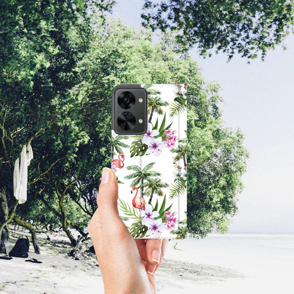 Een OnePlus Nord 2T Hoesje maken met Flamingo Palms is in vele opzichten bijzonder. De rode flamingo op het hoesje kent zijn oorsprong in het Caraïbische gebied. Stel dat je in deze regio vakantie aan het vieren bent, dan val je zonder meer op met dit hoesje met flamingo’s en palmbomen. Dit hoesje biedt bescherming voor alle zijden van je telefoon. Jouw apparaat ligt goed opgeborgen in de TPU houder aan de binnenzijde en de buitenkant van het hoesje met flamingo’s en palmbomen heeft een magnetische sluiting. Ook de palmbomen op deze stand case geven jou natuurlijk een ultiem vakantiegevoel. Het stand hoesje met flamingo’s en palmbomen heeft een vakje voor pasjes en een standaard en is op maat gemaakt.