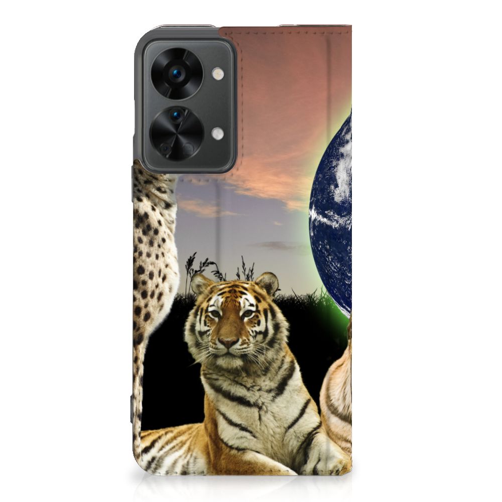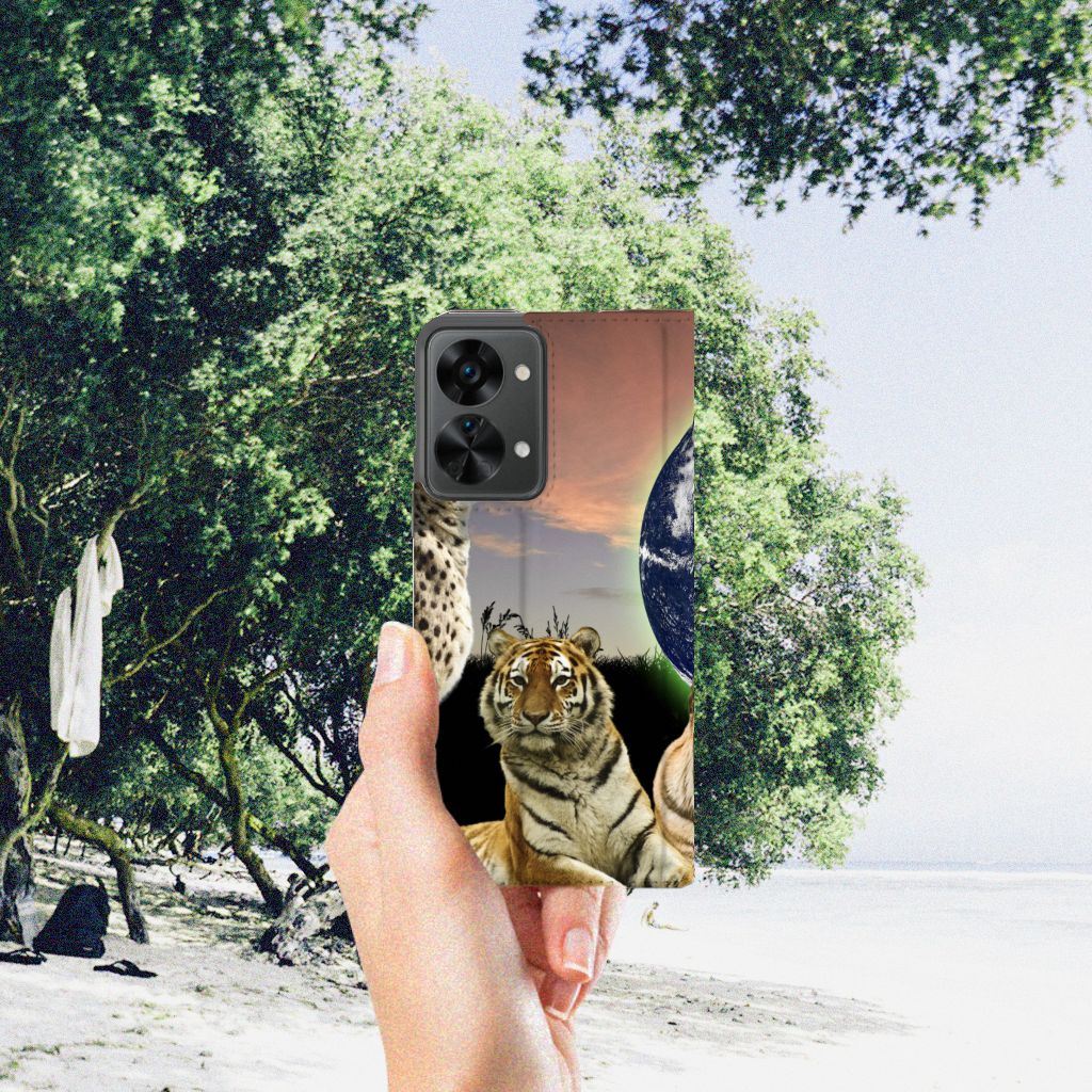 Deze standcase met roofdieren kan exclusief in het bezit van jou komen. Bovendien kun je hier zelf nog unieke teksten en/of beelden aan toevoegen. Je Hoesje maken krijgt dan een unieke identiteit. Roofdieren zoals tijgers op dit hoesje zijn voortdurend op zoek naar een geschikte prooi. De tijgers met aardbol op de achtergrond op deze stand case geven jouw OnePlus Nord 2T een hele stoere uitstraling. Deze bijzondere case is van PU-leer (buitenzijde) en TPU (binnenzijde) en beschikt over een houder en een speciale standaard. Verder is deze stand case met roofdieren voorzien van een magnetische sluiting aan de binnenzijde. Je zorgt voor de perfecte bescherming van je smartphone met dit design hoesje met roofdieren met aardbol op de achtergrond.