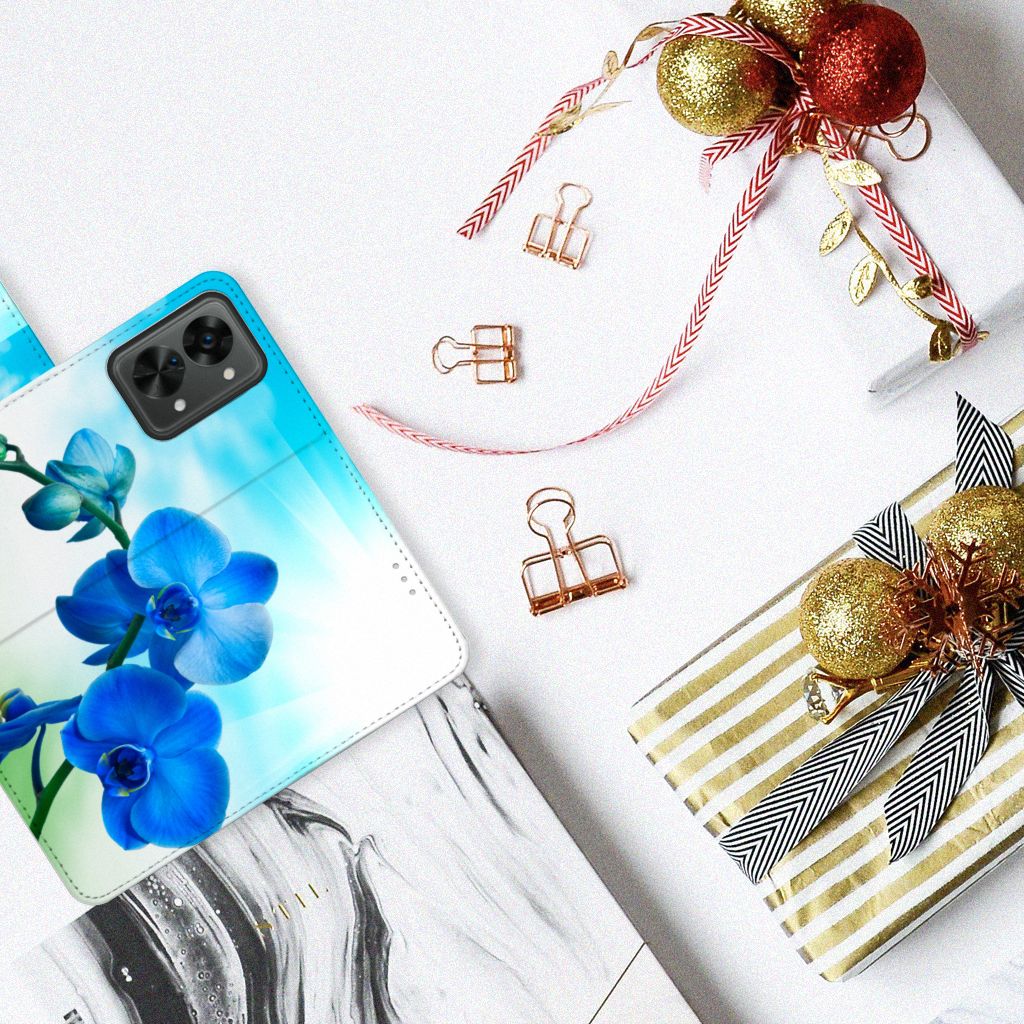 OnePlus Nord 2T Hoesje met magnetische sluitclip Orchidee Blauw