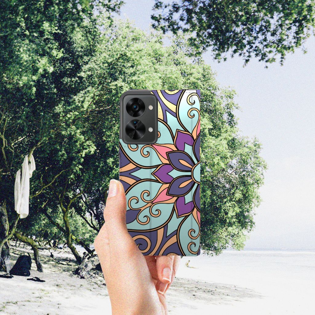 OnePlus Nord 2T Telefoonhoesje met Pasjes Pauw met Bloemen