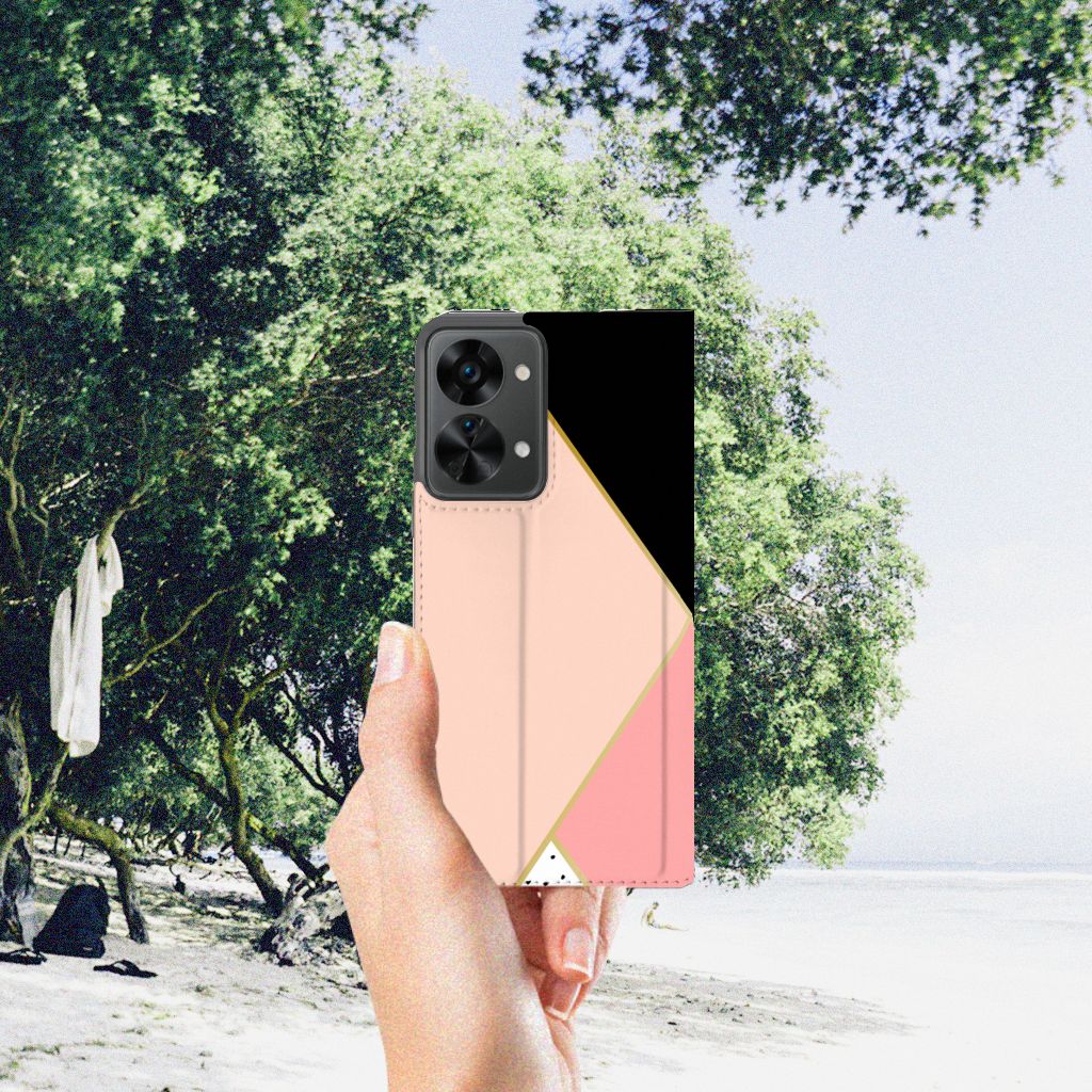 OnePlus Nord 2T Print Stand Case Zwart Roze Vormen