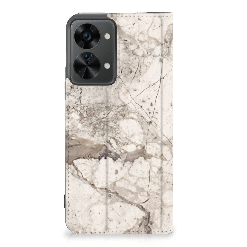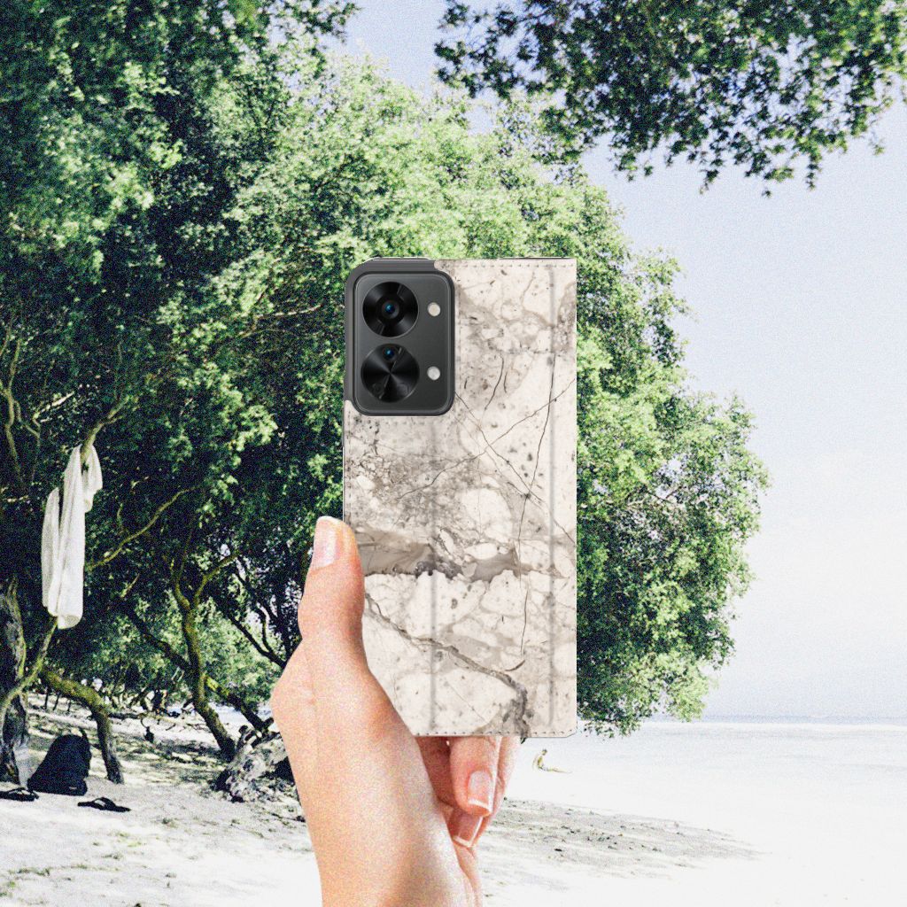 Dit design hoesje met Marmer Beige is voor de artistieke personen onder ons. De Grieken en Romeinen wisten het steen al te waarderen door het als bouw- en bekledingsmateriaal toe te passen. Naast het witte Carrara marmer met haar zacht grijze geaderde belijning zijn de diverse marmersoorten in een ruim kleurenpallet te krijgen. We hebben verschillende kleuren op design hoesjes gezet, zoals in dit geval beige marmer. Dit is een OnePlus Nord 2T Standcase met marmer in beige kleur. Het marmer wordt bedrukt op alle zijden van een stand case, die beschikt over 1 vakje voor een pasje en toebehoren en een magnetische sluiting aan de binnenkant. Verder heeft de case een houder van TPU. De rijkheid aan kleuren en varianties in afwerking geeft designers de vrijheid om met marmer hele mooie architectonische projecten te realiseren. Wij hebben onze designer ook veel vrijheid gegeven. Het resultaat zie je terug in deze stand case met beige marmer, dat de ideale bescherming voor jouw smartphone biedt.