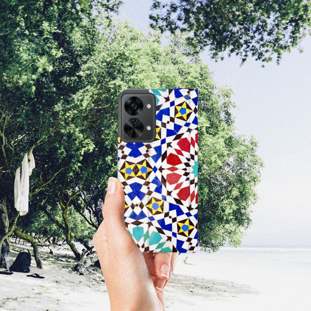 Aan design hoesjes met kunstvormen geen gebrek in onze uitgebreide collectie. Wat dacht je van dit design hoesje met Mozaïek . Dit is een kunstvorm waarbij een grote afbeelding wordt gemaakt uit een groot aantal kleine gekleurde steentjes (tesserae), die in een vloer of wand worden gemetseld. Deze gekleurde steentjes zie je terug op deze stand case met design van mozaïek. Een stand case is een van de veiligste cases die er bestaan. Een OnePlus Nord 2T Standcase met print zorgt voor een volledige bescherming van je smartphone en wordt aan alle zijden bedrukt met mozaïek. Verder is de houder aan de binnenzijde van TPU. De Grieken en Romeinen beheersten de kunst al. Op diverse plaatsen in Europa zijn mozaïeken teruggevonden die tot op de dag van vandaag goed bewaard zijn gebleven. Met een hoesje met mozaïek blijft jouw telefoon in tact. Je pasje en kun je in het vakje aan de binnenzijde stoppen. De case heeft ook een standaard.