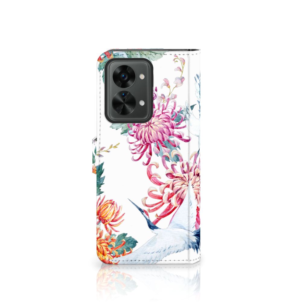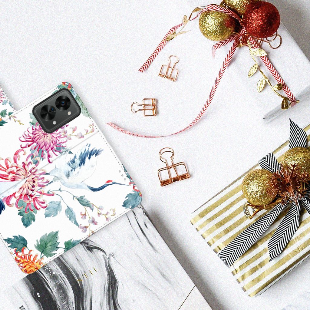 OnePlus Nord 2T Telefoonhoesje sluit met magnetische lipje Bird Flowers