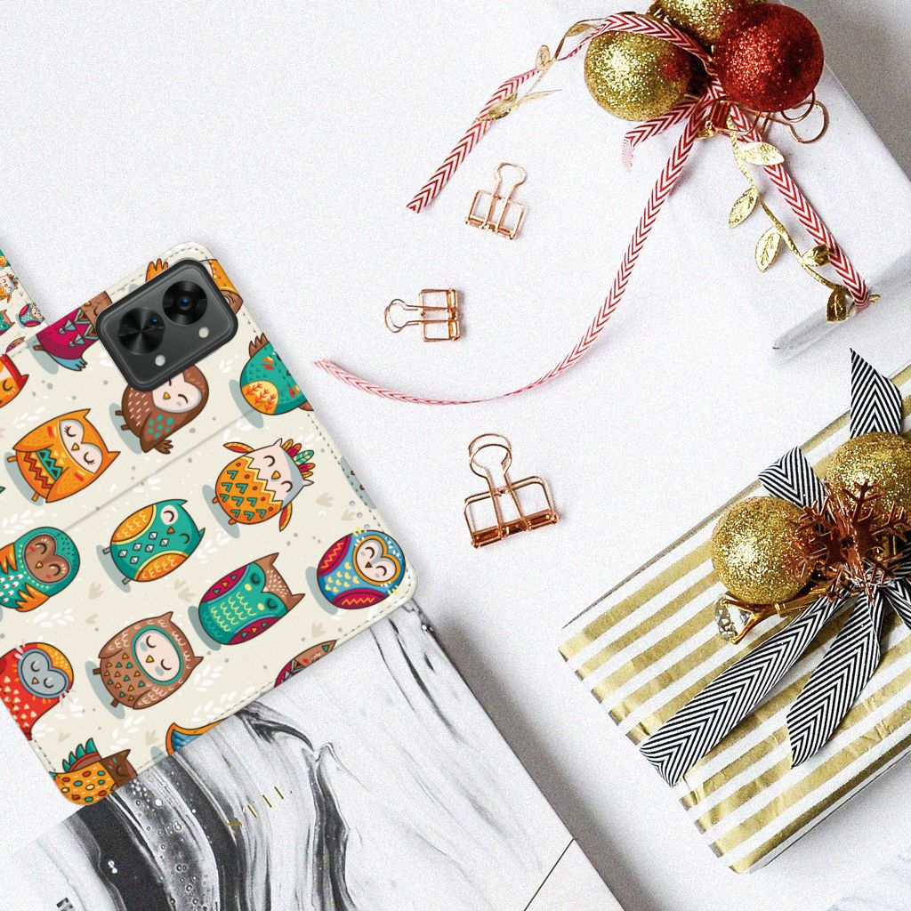 OnePlus Nord 2T Telefoonhoesje met ruimte voor drie pasjes Vrolijke Uilen