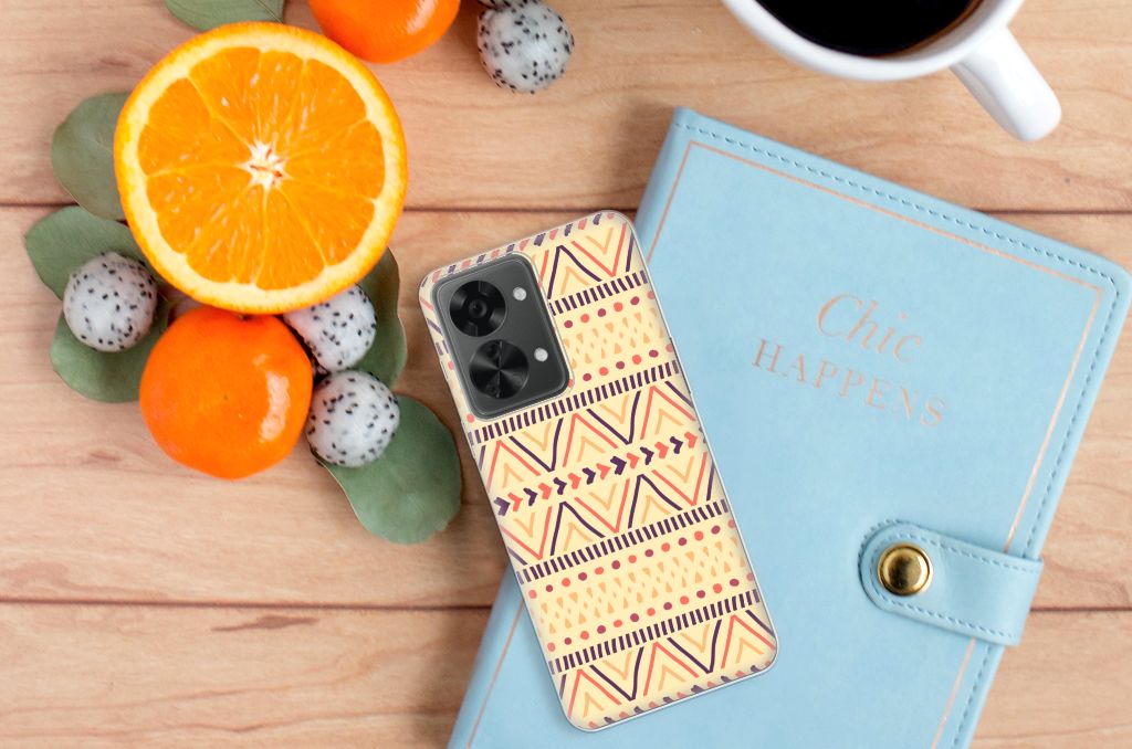 De Azteken leefden tussen 1200 en 1521 in het huidige Mexico. De mooie Aztec-patronen waar zij bekend om stonden, zien we nu nog op kleding, stoffen en tassen. Wie had toen kunnen bedenken dat we diezelfde prints honderden jaren later zelfs op een telefoonhoesje zouden vinden? Dit kleurrijke Aztec Yellow-hoesje is perfect voor iedereen die een stukje geschiedenis bij zich wil dragen maar ook gewoon een mooi patroon op zijn hoesje wil. Dit vrolijke, kleurrijke ontwerp staat op een TPU bumper voor de OnePlus Nord 2T. TPU is flexibel en onbreekbaar. Zo is je telefoon aan de achterkant en de randen heel goed beschermd. De case is aan de bovenkant bedrukt, de randen blijven transparant.